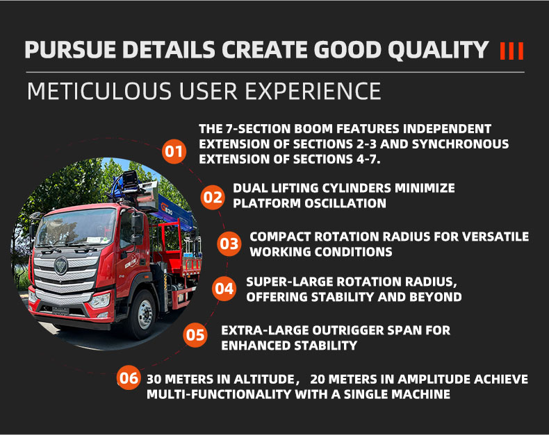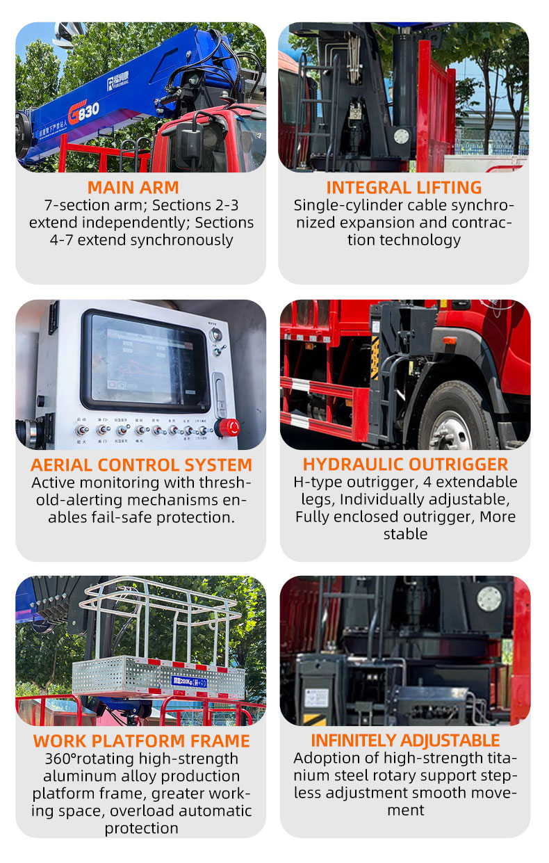 Xe làm việc trên không đa năng này được trang bị cần cẩu ống lồng bảy đoạn, nặng 8 tấn, có khả năng hoạt động ở độ cao lên đến 30 mét. Xe được trang bị điều khiển từ xa không dây và hệ thống điều khiển điện tử nổi tiếng của Trung Quốc.